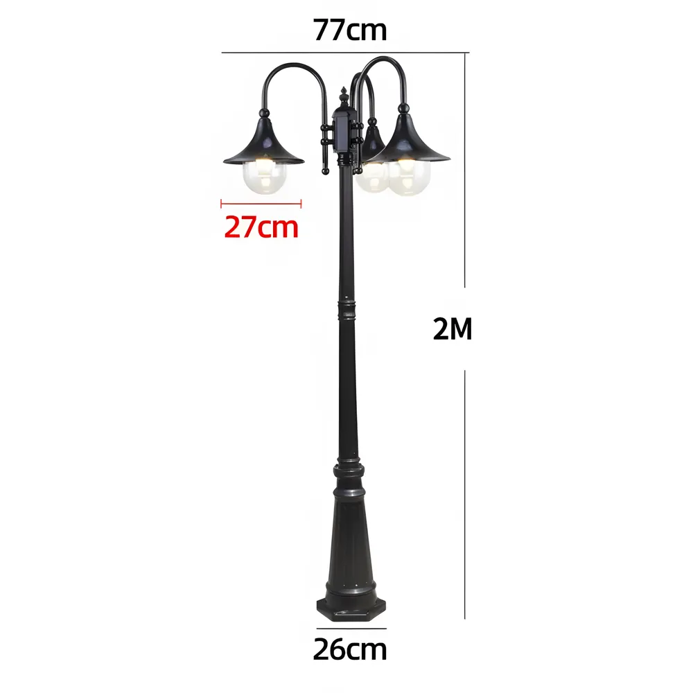 Le lampadaire extérieur vintage est un ajout élégant et rétro pour illuminer vos espaces extérieurs. Conçu en aluminium de haute qualité, il est disponible en deux tailles : 200 x 26 cm et 260 x 26 cm, offrant ainsi une grande flexibilité d’installation pour différents environnements. Disponible en deux couleurs, bronze et noir, ce lampadaire s’harmonise parfaitement avec un style classique et intemporel. Son indice d’étanchéité IP65 garantit une résistance optimale aux intempéries, assurant une longue durée de vie.