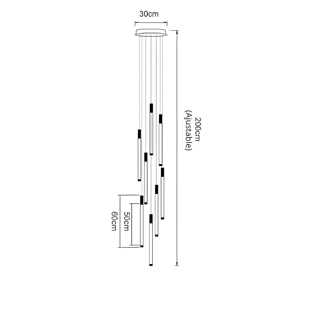Le lustre escalier moderne se distingue par son design audacieux et raffiné. Suspendu au plafond, il s’étend en une cascade de lumière dorée, capturant l’essence même du luxe contemporain. Ses dimensions ajustables permettent de l’adapter à divers environnements, offrant des options de 30 x 200 cm jusqu’à 60 x 300 cm.